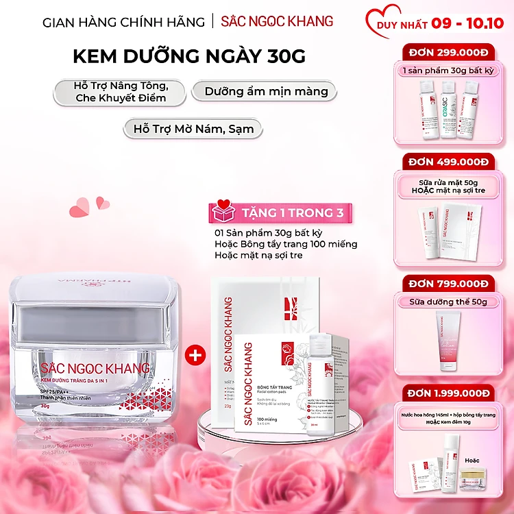 Kem dưỡng da Sắc Ngọc Khang 5 trong 1 ban ngày 30g giúp nuôi dưỡng làn da sáng khỏe, mờ thâm nám ngăn ngừa lão hóa