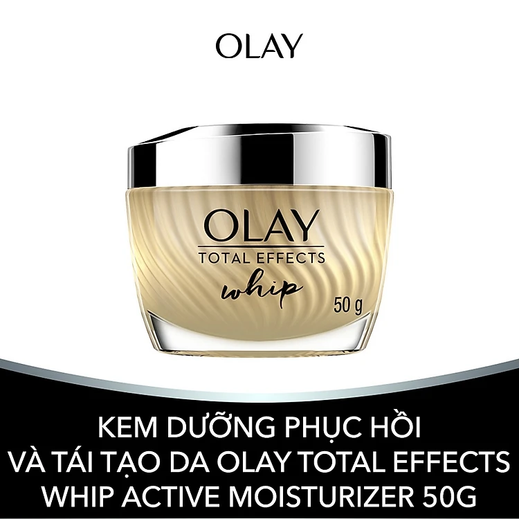 - Kem Dưỡng Phục Hồi Và Tái Tạo Da Olay Total Effects Whip Active Moisturizer là dòng kem dưỡng da giúp phục hồi và tái tạo da, đồng thời giúp ngăn ngừa lão hóa da, làm chậm quá trình lão hóa da. Chăm sóc và phục hồi da luôn mềm mại, trẻ trung nhờ vào thành phần Ceramide và Hyaluronic giúp ngăn chặn sự thoát hơi nước dẫn đến tình trạng khô da.