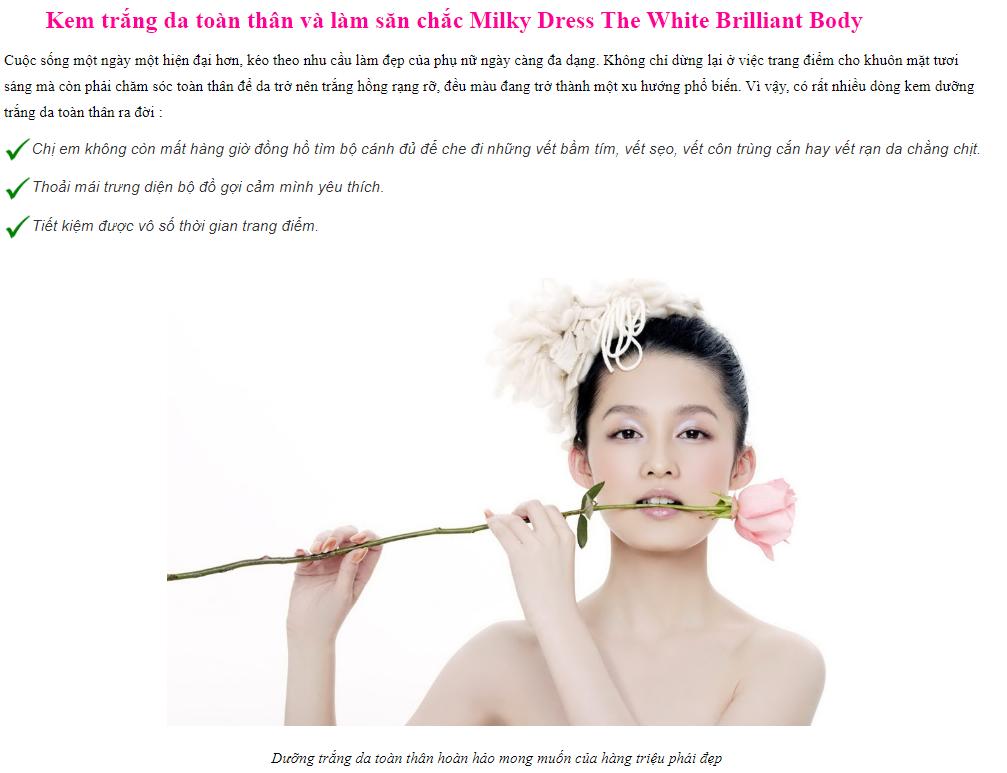 Kem dưỡng thể làm trắng và làm săn chắc da Milky Dress The White Brilliant Body, giúp da săn chắc và mềm mại, tăng độ đàn hồi cho da, nhập khẩu Hàn Quốc