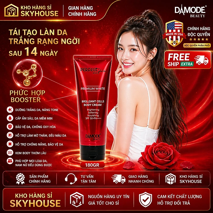 Kem body trắng da BRILLIANT CELLS DAMODE chai 180gr kem body dưỡng ẩm đều màu da chính hãng