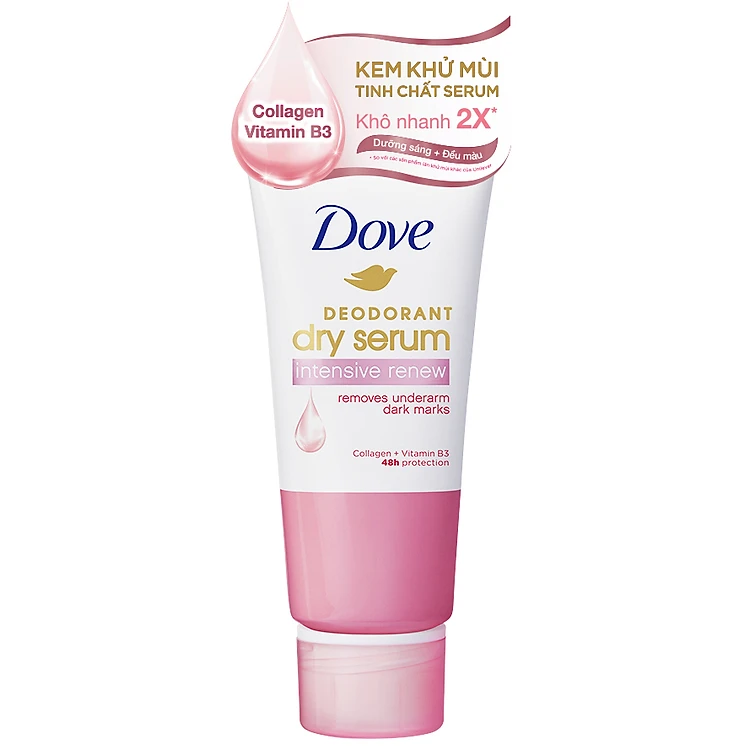 - Kem Khử Mùi Dove Tinh Chất Serum Sáng Mịn Đều Màu với Collagen & Vitamin B3 50ml dưỡng da sáng mịn & đều màu, nhờ thành phần chứa Collagen & Vitamin B3: