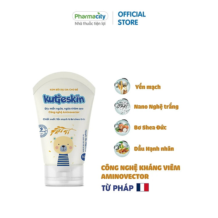 Kem mẩn ngứa hăm Kutieskin chứa các thành phần thiên nhiên nhập khẩu châu Âu: