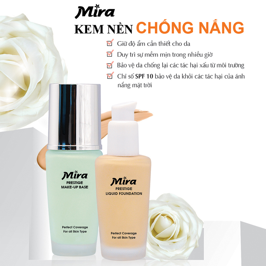 - Kem Nền Chống Nắng Mira Liquid Foundation phát huy tối đa khả năng bám dính, chống bóng nhờn và duy trì độ ẩm cần thiết cho da tạo nên một lớp nền hoàn hảo nhất. Duy trì làn da mềm mại tự nhiên trong suốt nhiều giờ.