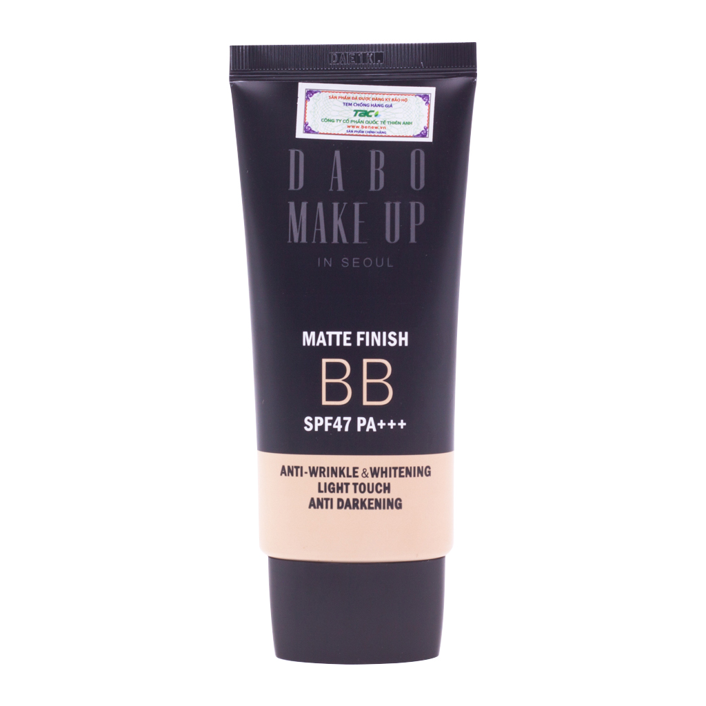 Các cô gái hiện đại luôn có xu hướng lựa chọn những sản phẩm kết hợp nhiều công dụng để tiết kiệm thời gian. Đó là lý do tại sao kem nền trang điểm bb ra đời với đầy đủ các bước cùng lớp lớp sản phẩm trên mặt như kem dưỡng, chống nắng, nền, foundation; chỉ cần một lớp BB Cream là đã tạo nên một lớp nền hoàn hảo, thậm chí không cần cả phấn phủ. Kem nền trang điểm cao cấp Hàn Quốc DABO MAKE UP MATTE 5 in 1 BB SPF47 PA+++ (50ml)  mang đến một làn da hoàn hảo không tì vết và hơn hết là vô cùng tự nhiên.