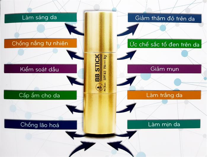 Đánh bật quan điểm ” Trang điểm làm xấu da”, #BBSTICK thay đổi 1 cách toàn diện giúp cho làn da trắng sáng, mịn màng, giảm các dấu hiệu lão hoá, giảm mụn, giảm thâm trên da sau 4-8 tuần sử dụng.