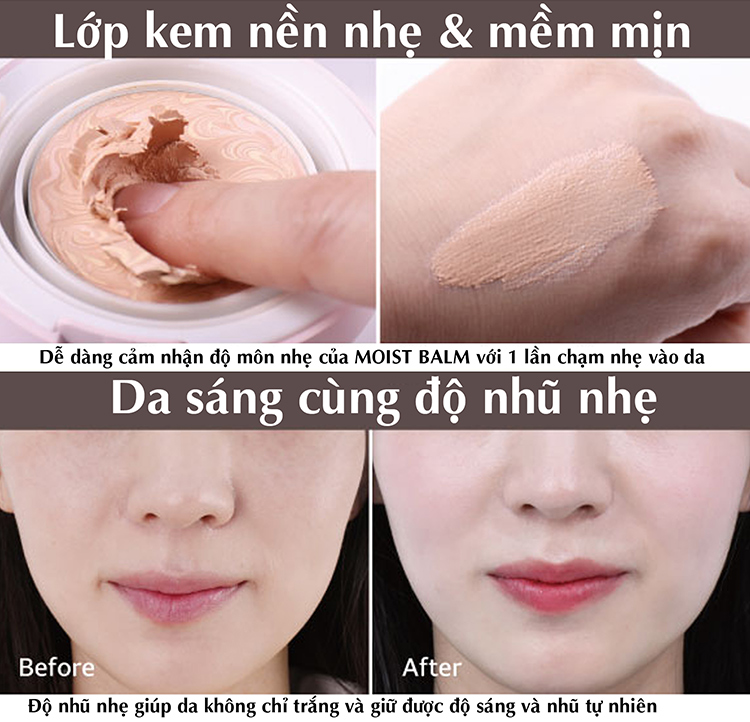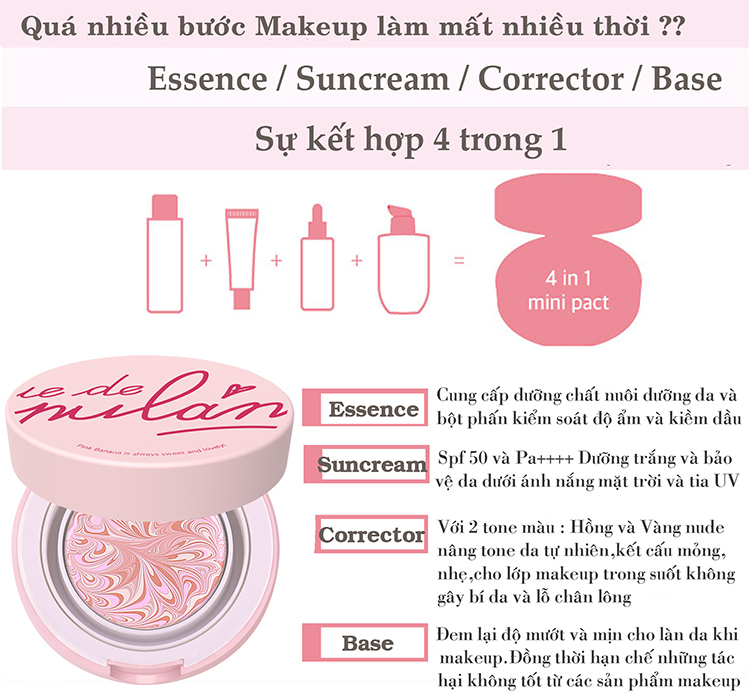 - Kem Lót VueDePuLang Moist Balm Pink Banana với lõi phấn màu hồngdành cho làn da trắng sáng, hơi xanh, thiếu sức sống thích hồng hào hơn.
