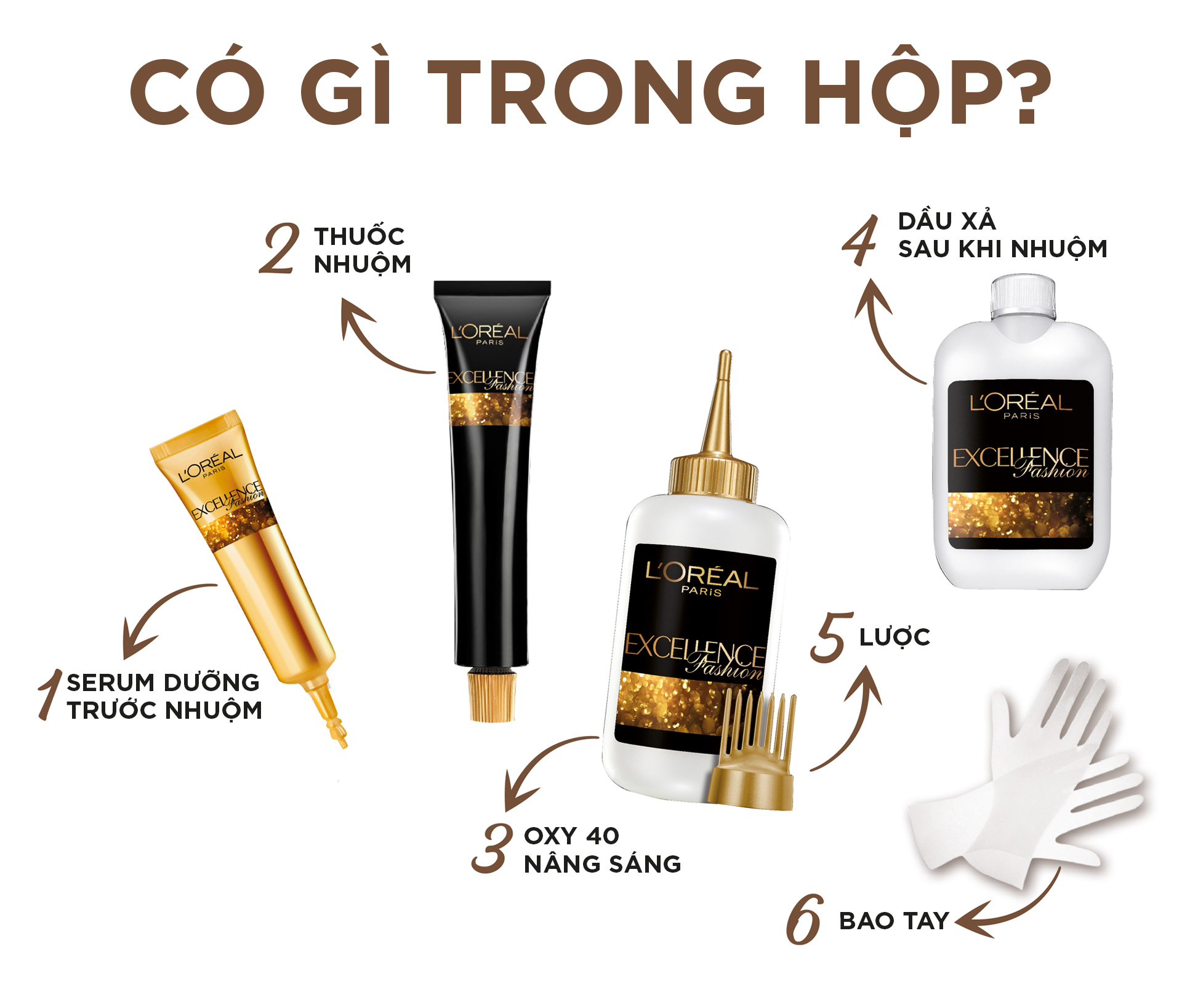 ● Kem nhuộm dưỡng tóc màu thời trang L'Oreal Paris Excellence Fashion 172ml giúp bạn tự tin làm mới mình với tông màu hiện đại, thời trang cùng mái tóc óng ả, mượt mà.