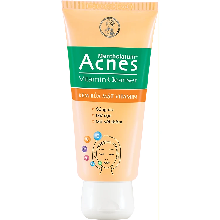 Kem Rửa Mặt Acnes Vitamin Cleanser (50g) kết hợp các vitamin cần thiết cho làn da như vitamin E, C, A, B3, B5, B6 đặc biệt thích hợp cho việc chăm sóc và cải thiện làn da sau mụn. Acnes Vitamin Cleanser không chỉ rửa trôi bụi bẩn, ngừa khuẩn mụn trở lại mà còn giúp da sáng khỏe, mờ dần vết thâm sau mụn, mô sợi collagen trở nên săn chắc hơn.