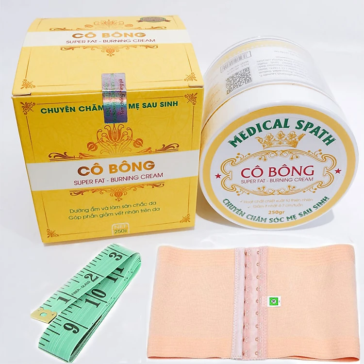 Sản phẩm kem tan giảm mỡ bụng cô bông được chiết xuất từ các loại sản phẩm chuyên trị: nghệ hạ thổ cô đặc, trà xanh, cao bí đao giúp làm mờ và trắng mịn vết thâm rạn, vitamin e ó tác dụng giảm mỡ bụng, bắp tay, bắp chân nhanh chóng và hiệu quả.