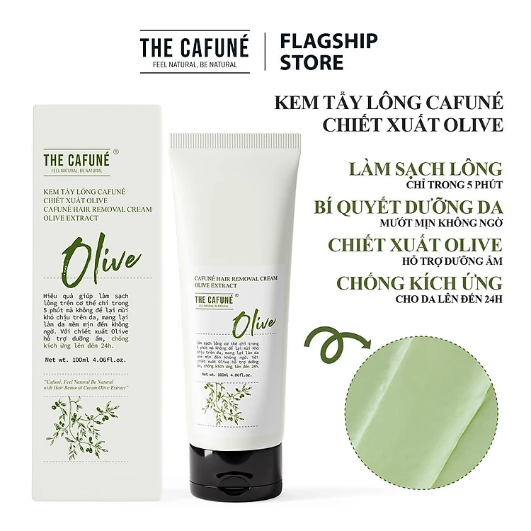 Kem Tẩy Lông Cafuné Chiết Xuất Olive an toàn cho bikini, chân, tay, nách, bụng, ngực 100ml