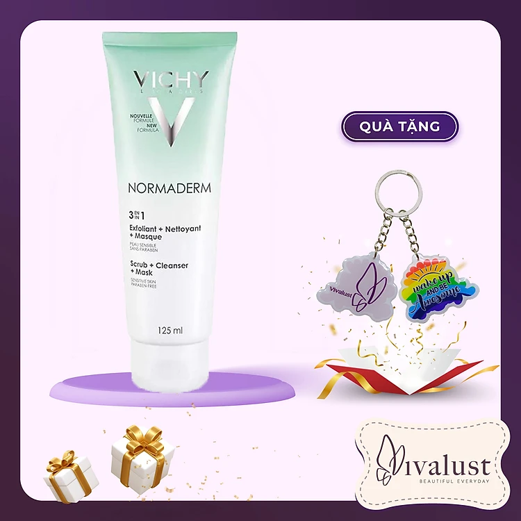 Kem Tẩy Tế Bào Chết 3 Tác Dụng VICHY Normaderm 3in 1 Scrub + Cleanser + Mask 125ml + Tặng Móc Khóa