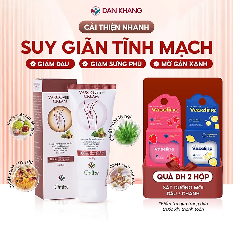 Kem Thoa Giảm Sưng Đau, Tê Phù, Chuột Rút Do Suy Giãn Tĩnh Mạch Vascovein Dân Khang - Tuýp 50g