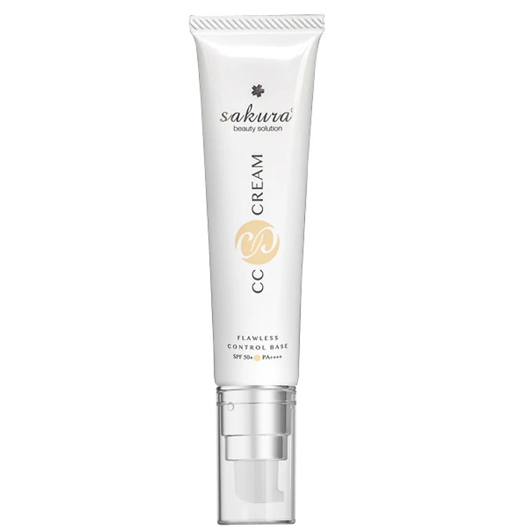 Kem Trang Điểm Chống Nắng Sakura CC Cream Flawless Control Base (40ml) tích hợp cả chức năng dưỡng da, trang điểm, chống nắng. Với 10 tính năng nổi bật chỉ trong một sản phẩm (All in One), cho lớp trang điểm siêu mịn mượt, sáng màu, trong suốt có khả năng dưỡng trắng sáng da dài lâu.