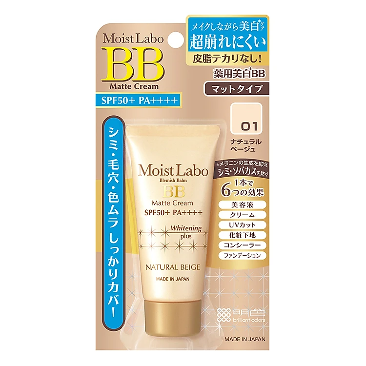 - Moist-Labo BB Matte Cream được biết đến như là kem trang điểm dưỡng ẩm dành cho người siêu bận rộn. Chỉ 1 sản phẩm có ngay 6 công dụng: tinh chất dưỡng, kem, cắt tia UV, kem lót, kem che khuyến điểm, kem nền.