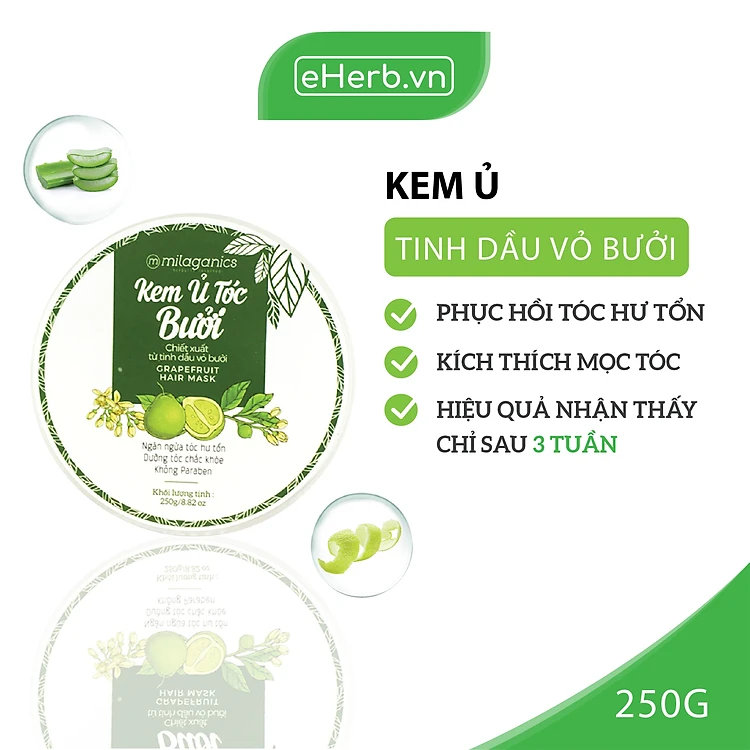 Kem ủ tóc Bưởi Milaganics là sự bổ sung cần thiết cho mái tóc hư tổn, gãy rụng đang cần được cung cấp lượng dưỡng chất chuyên biệt. Sản phẩm tạo nên từ sự kết hợp giữa các chiết xuất thiên nhiên tuyển chọn: tinh dầu vỏ bưởi, nước nha đam, các loại dầu nền tinh khiết cùng các hoạt chất Biotin, Keratin, Vitamin Eới kết cấu siêu mịn đặc biệt, Kem ủ bưởi Milaganics sẽ lập tức thẩm thấu sâu vào lớp biểu bì, nhẹ nhàng nuôi dưỡng, phục hồi mái tóc hư tổn và ngăn ngừa các tác nhân gây nên tình trạng gãy rụng đến mức tối đa.