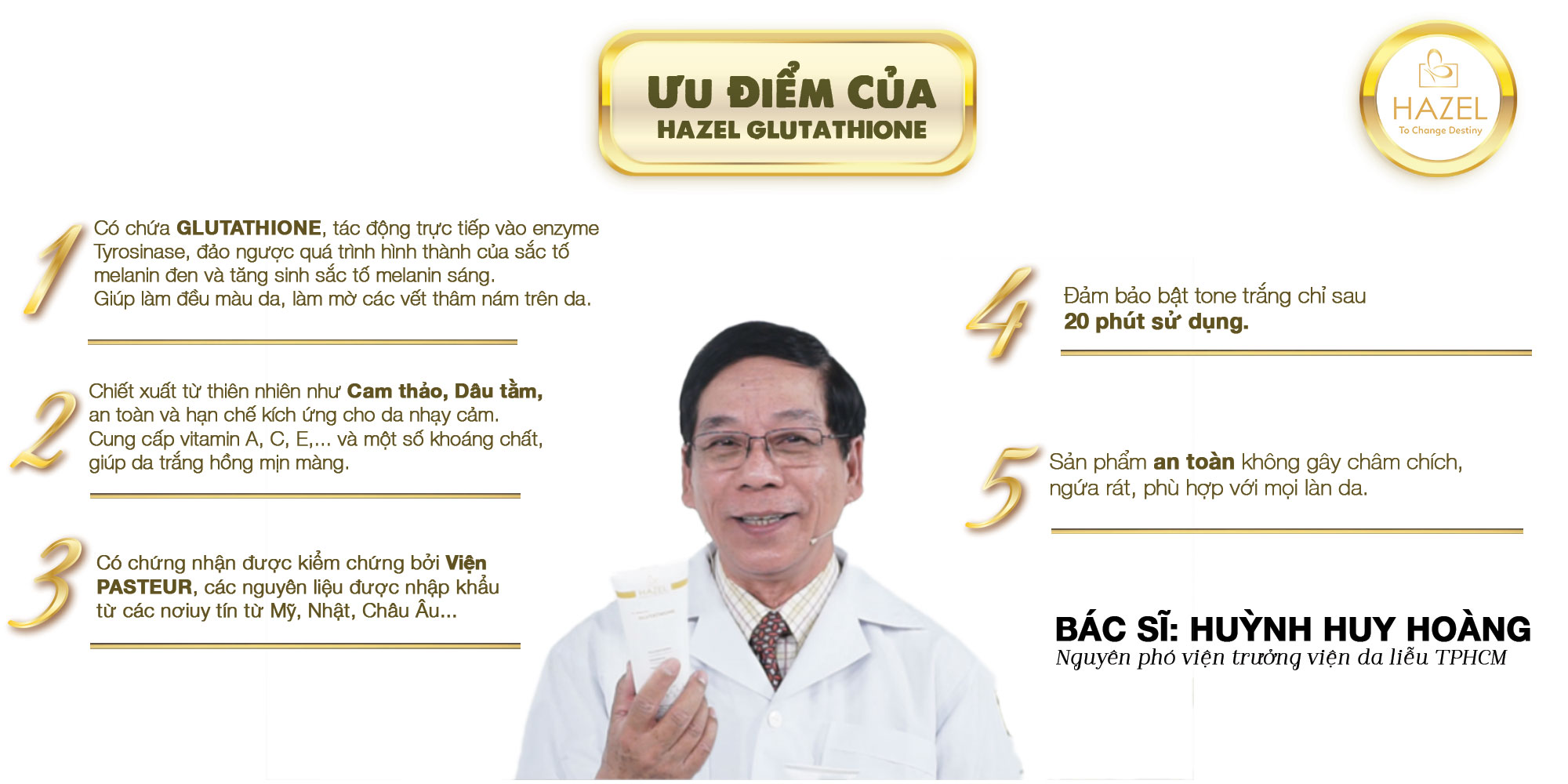 BÁC SỸ HUỲNH HUY HOÀNG - NGUYÊN PHÓ VIỆN TRƯỞNG VIỆN DA LIỄU TP. HCM NHẬN XÉT SẢN PHẨM KEM Ủ TRẮNG BODY CHUYÊN SÂU - 20 MINUTES GLUTATHIONE 250ML