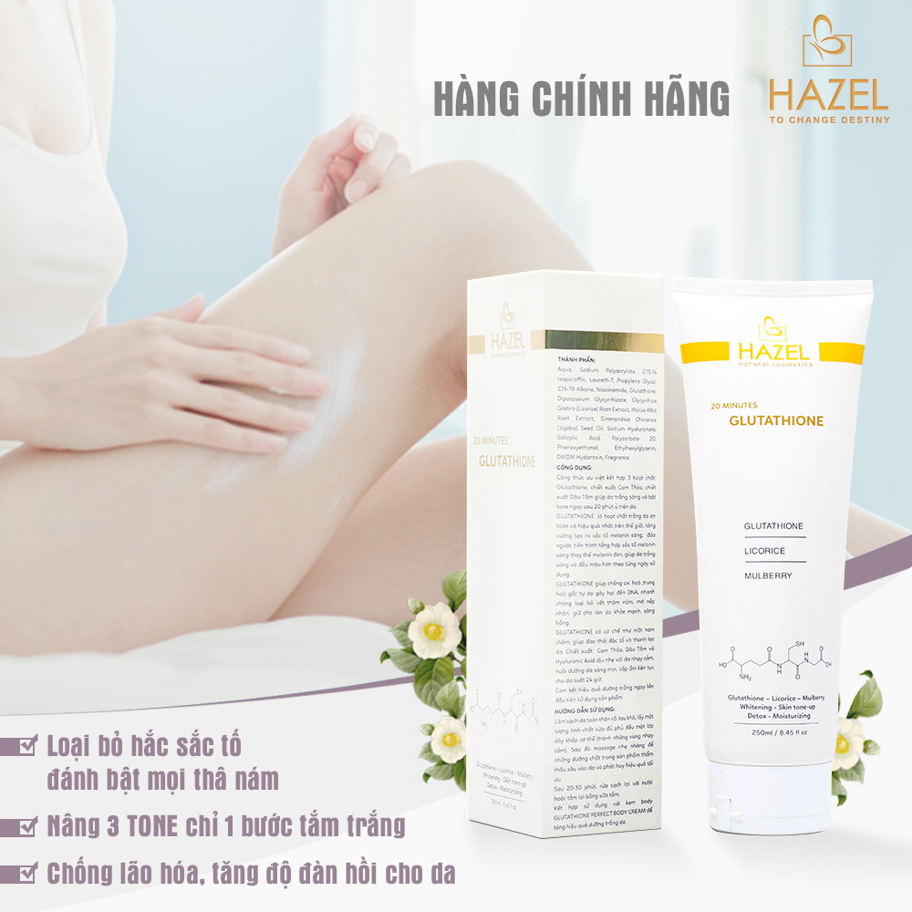 KEM Ủ TRẮNG BODY CHUYÊN SÂU - 20 MINUTES GLUTATHIONE 250ML - GIẢI PHÁP LÀM TRẮNG SINH HỌC NHANH CHÓNG HIỆU QUẢ VÀ AN TOÀN TUYỆT ĐỐI sẽ giúp bạn có được một làn da trắng mịn không tỳ vết và căng tràn sức sống