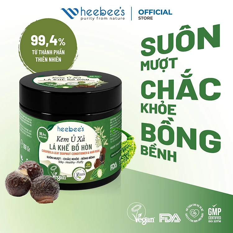 Kem Ủ Xả Lá Khế Bồ Hòn Heebee's Suôn Mượt, Chắc Khỏe, Bồng Bềnh 168 Gram
