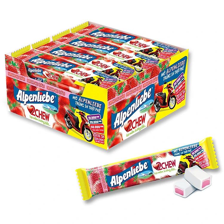 - Kẹo Mềm Alpenliebe 2Chew Hương Dâu (Hộp 16 Thỏi) Với hương vị dâu thơm ngon, ngọt ngào, cung cấp nhiều năng lượng, kẹo mềm Alpenliebe đã trở thành một phần không thể thiếu trong những bữa tiệc, liên hoan hay dùng để nhâm nhi những lúc rảnh rỗi.