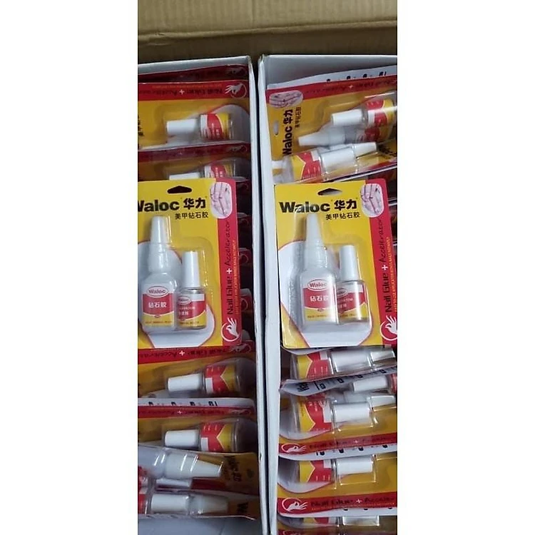 Gồm 2 chai: chai to là keo gắn móng- đá lâu khô, chai nhỏ làm cho keo nhanh khô