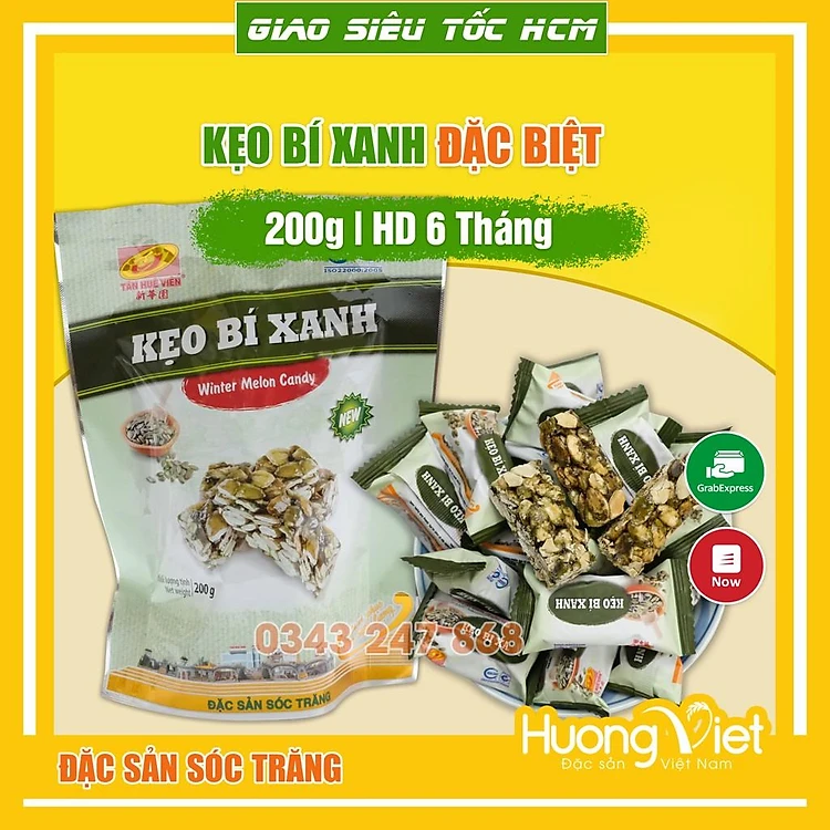 HUONGVIETMART cam kết Kẹo bí xanh 200g chính hãng 100% Tân Huê Viên, Đó cũng là lý do HUONGVIETMART nhận được hơn 6.000 đánh giá 5 sao ️️️️️