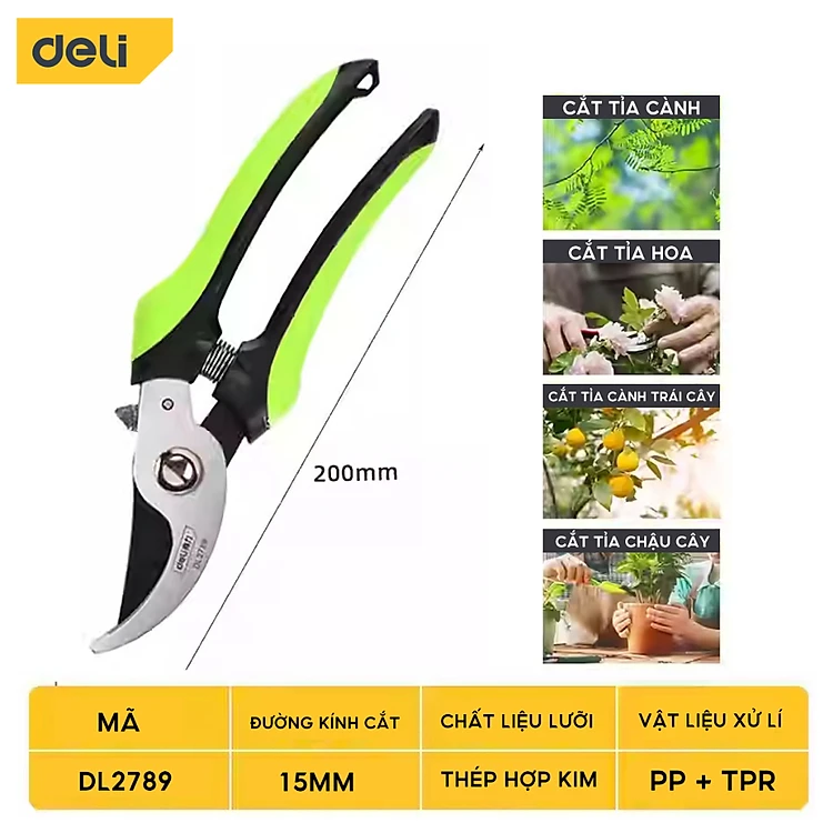 Kéo Cắt Tỉa Cành Cây Deli Chính Hãng 8inch - Lưỡi Thép Sắc Bén, Siêu Bền, Tay Cầm Đệm Cao Su An Toàn, Chắc Chắn DL580201