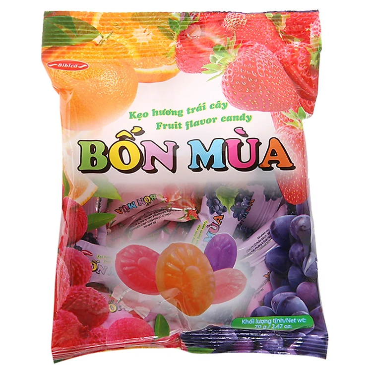 - Kẹo cứng Trái Cây 4 mùa 70g với hương vị hấp dẫn, giúp bổ sung năng lượng và chất dinh dưỡng.