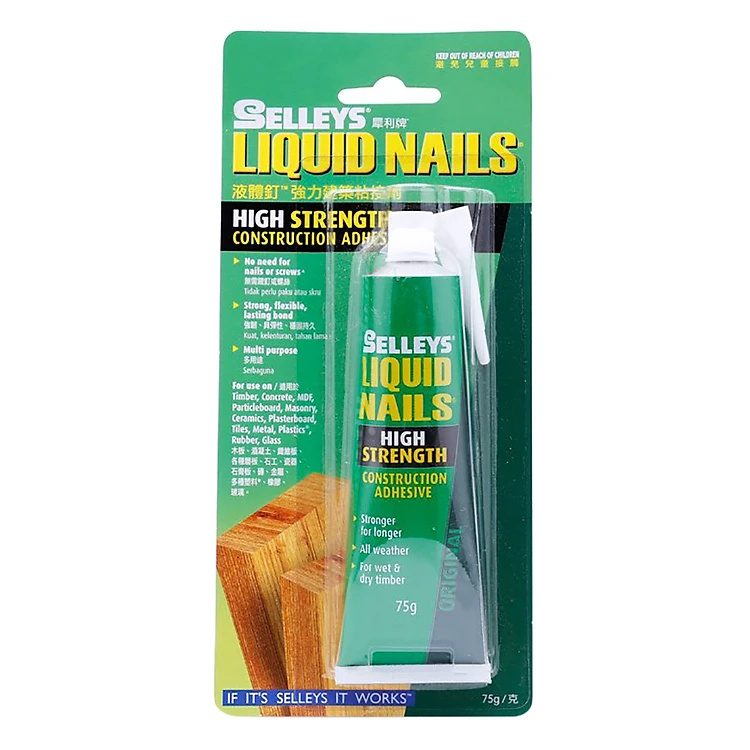 - Keo Dán Gỗ Đa Năng Selleys Liquid Nails là loại keo cao cấp, độ bền cao và kết dính tuyệt vời trên hầu hết các bề mặt, nhờ tính năng đàn hồi cao cùng khả năng chịu được sự co giãn tự nhiên và sự xê dịch của bề mặt vật liệu.