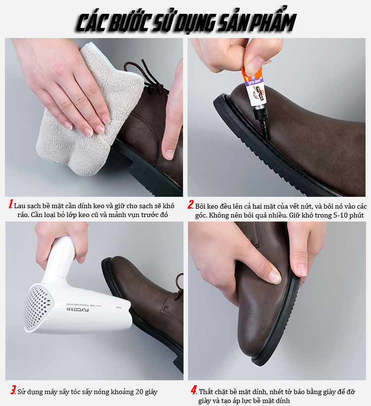 Keo dán giày dép siêu dính đa năng dán có công dụng dán tốt các vật liệu dưới đây: