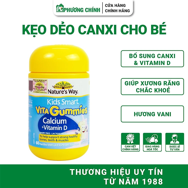 Kẹo Dẻo Bổ Sung Canxi Cho Bé Nature's Way Kids Smart Vita Gummies Calcium + Vitamin D 60 Viên/Hộp