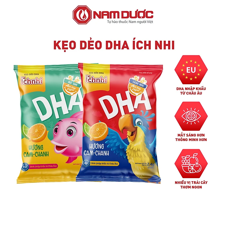 Kẹo dẻo DHA Ích Nhi phát triển trí não, tăng cường thị lực, giảm mỏi mắt cho bé, hương trái cây, dây 10 gói x 24g
