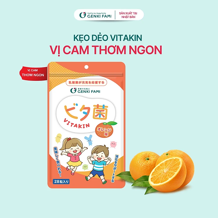 Kẹo Dẻo Vị Cam Bổ Sung Vitamin và Lợi Khuẩn Genki Fami Nhật Bản Gói 28 Cái