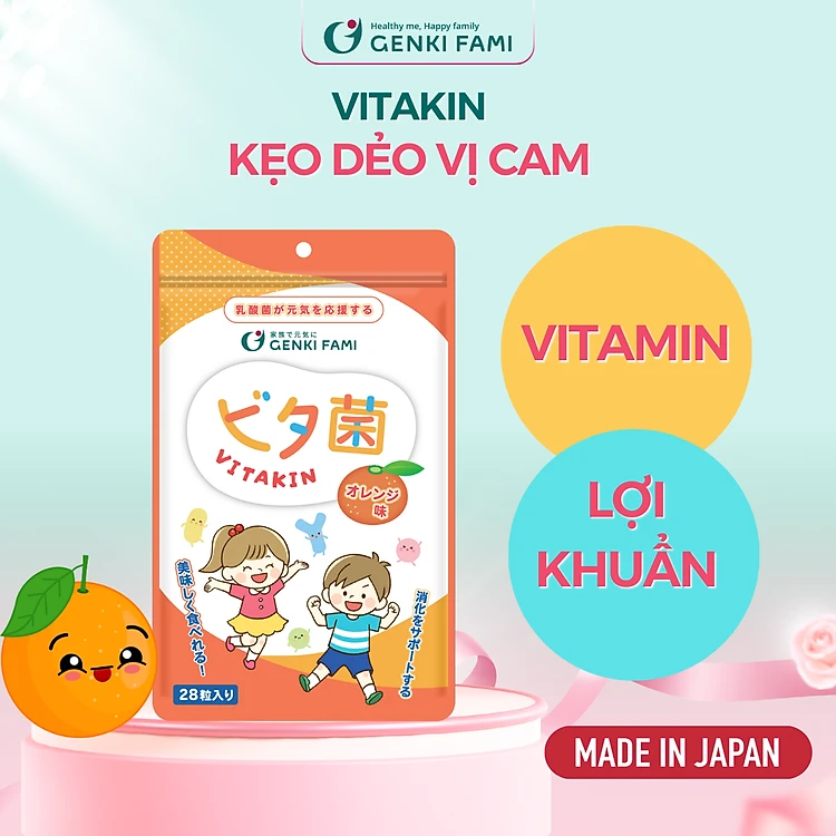 Kẹo Dẻo Vị Cam Bổ Sung Vitamin và Lợi Khuẩn Genki Fami Nhật Bản