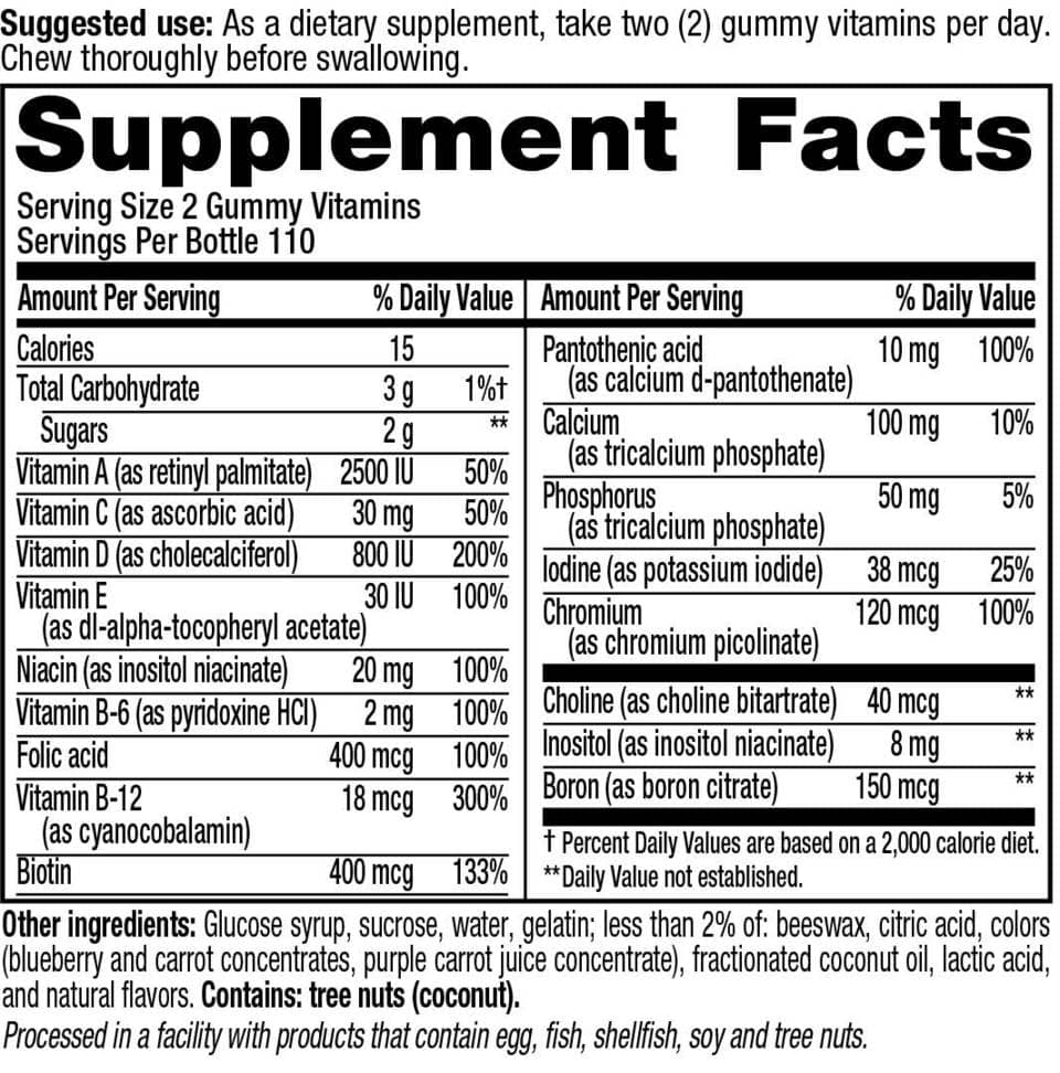 Thành phần dinh dưỡng Vitafusion Women’s Multivitamin 220 viên: