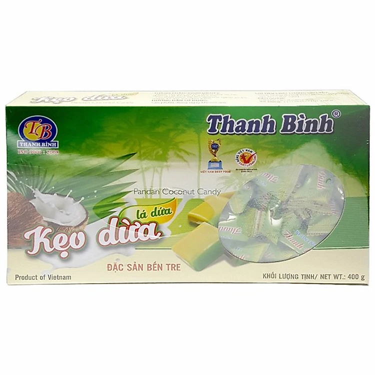 - Kẹo dừa dẻo hương lá dứa Thanh Bình được làm từ những nguyên liệu tự nhiên như: đường cát, mạch nha, nước cốt dừa, lá dứa... chọn lọc kỹ lưỡng mang đến chất lượng và mùi vị lá dứa tuyệt hảo cho từng viên kẹo. Ngoài ra, sản phẩm được sản xuất trên dây chuyền công nghệ hiện đại nên an toàn cho sức khỏe người dùng. Kẹo dừa dẻo mềm, thơm ngon mang lại những trải nghiệm thú vị cho người thưởng thức.