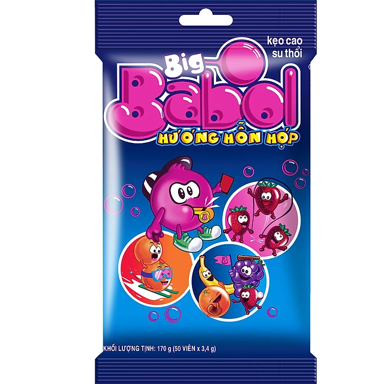 - Kẹo Gum Thổi Big Babol Hương Trái Cây (Gói 50 Viên) là sản phẩm của Perffeti Van Melle Việt Nam. Sản phẩm mang tới hương vị tự nhiên thơm ngon, hấp dẫn của các loại hoa quả và đặc biệt được các em nhỏ yêu thích.