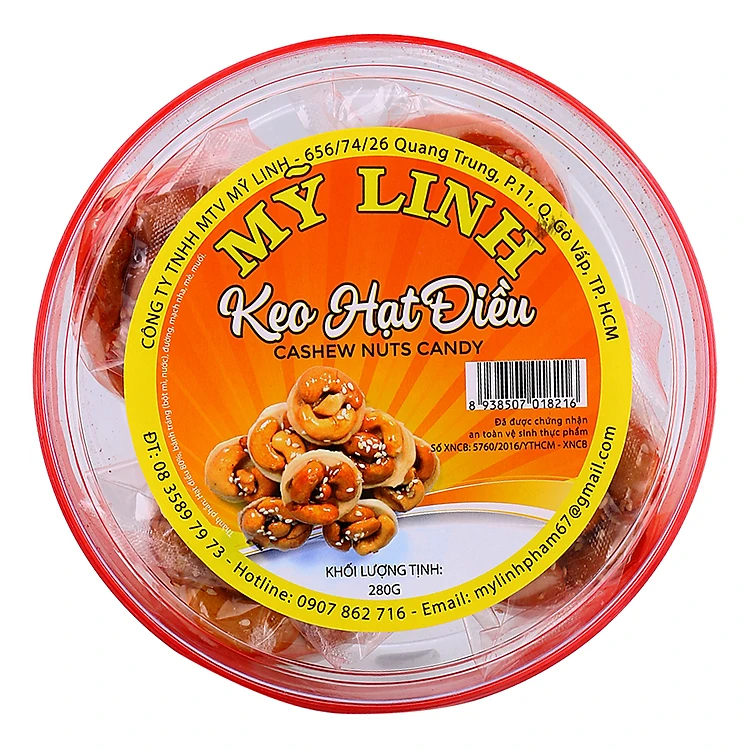 Kẹo Hạt Điều Mỹ Linh Hộp Tròn (280g)