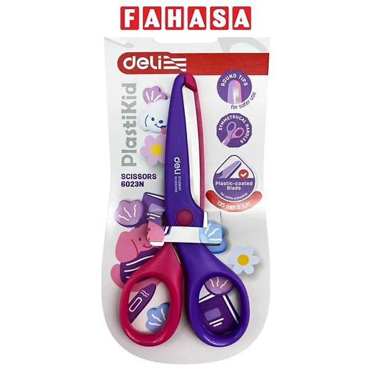 Kéo Học Sinh PlastiKid 135 mm - Deli E6023N - Màu Tím-Hồng
