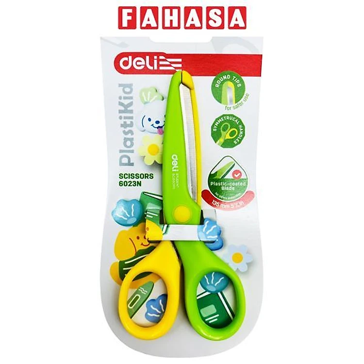 Kéo Học Sinh PlastiKid 135 mm - Deli E6023N - Màu Vàng-Xanh Lá