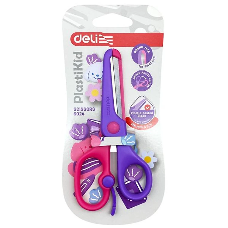 Kéo Học Sinh PlastiKid 136 mm - Deli E6024 - Màu Tím-Hồng