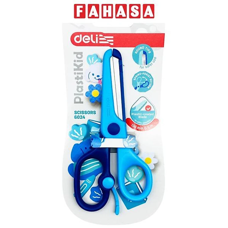 Kéo Học Sinh PlastiKid 136 mm - Deli E6024 - Màu Xanh Dương