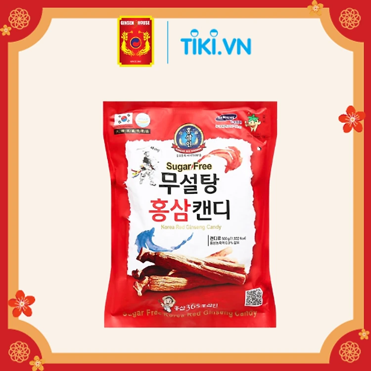 Kẹo Hồng Sâm Hàn Quốc Không Đường Ginseng House - Bịch đỏ 500g - Giảm Mệt Mỏi & Căng Thẳng