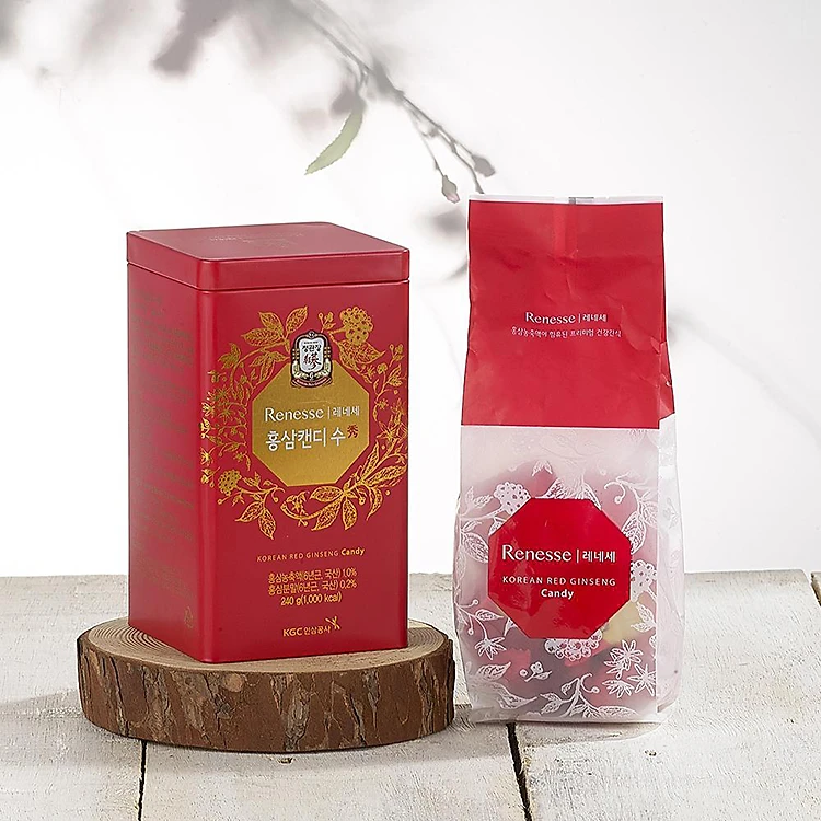 • Kẹo Hồng Sâm KGC Cheong Kwan Jang KRG Candy làm thơm miệng với kẹo hồng sâm cao cấp. Vị sâm kết hợp bạc hà và chất tạo ngọt thiên nhiên.