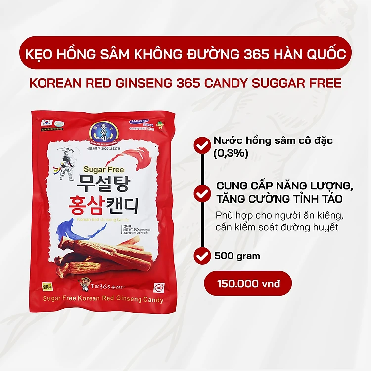 Kẹo Hồng Sâm Không Đường 365 Hàn Quốc - Hỗ Trợ Tăng Đề Kháng, Giảm Say Tàu Xe, Không Gây Tăng Đường Huyết