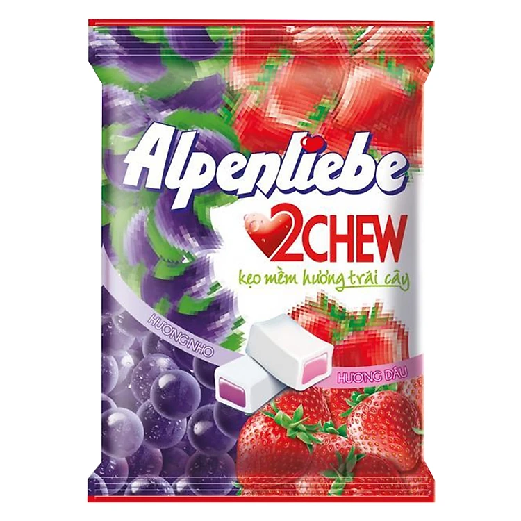 Kẹo Mềm Alpenliebe 2Chew Hương Hỗn Hợp Dâu & Nho (Gói 75 Viên)