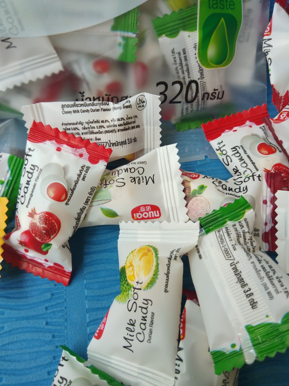 Kẹo sữa mềm trái cây Thái Lan với vị ngọt thanh, được bọc bên ngoài một lớp kẹo sữa mềm. Bên trong là lớp rau câu siêu dẻo thơm vị trái cây đặc trưng. Tổng thể kẹo thơm vị sữa hoà quyện với vị trái cây cực ngon đảm bảo bạn chỉ có nghiện ăn hoài mà thôi. Kẹo sữa mềm trái cây Thái Lan có rất nhiều vị kẹo khác nhau: - dưa lưới - cherry - việt quất - socola - cà phê - dưa hấu - dâu - bắp - khoai môn - sầu riêng - trà xanh…