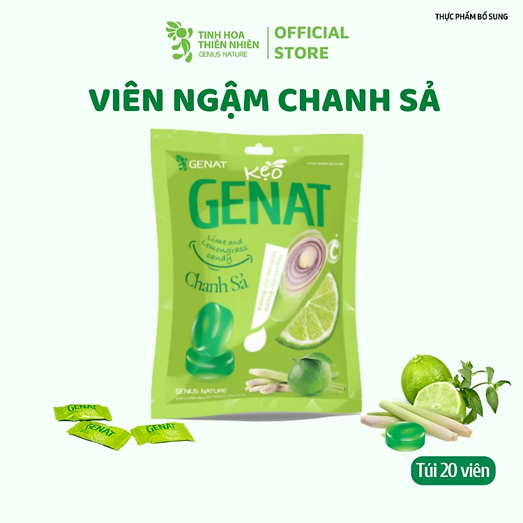 Kẹo ngậm Chanh Sả (Túi 20 viên) - Genat -Tinh Hoa Thiên Nhiên
