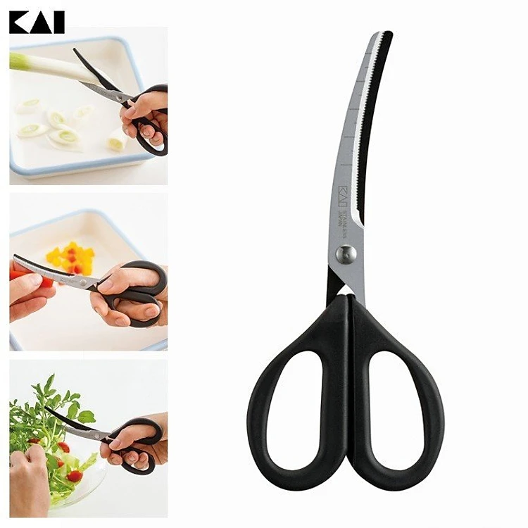 Kéo Nhà Bếp Đầu Cong Lưỡi Răng Cưa Bằng Thép Không Gỉ Kai - Hàng Nội Địa Nhật Chất Lượng