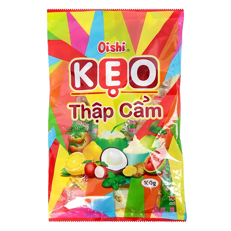 - Kẹo Oishi Thập Cẩm Gói 160g với hương vị thơm ngon tuyệt vời, kẹo thương hiệu Oshi được nhiều người biết đến như món ăn vặt yêu thích mỗi ngày. Sản phẩm được đóng gói theo quy trình sản xuất hiện đại, khép kín, đảm bảo an toàn vệ sinh thực phẩm, mang đến cho người tiêu dùng sự an tâm và tin tưởng. Những chiếc kẹo nhỏ xinh được đóng gói tiện lợi, dễ dàng cho bạn để mang theo bên mình và chia sẻ cùng người thân, bạn bè. Sản phẩm cũng phù hợp để bày trong khay mứt kẹo ngày lễ, Tết.