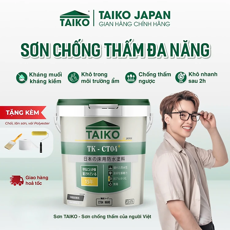 [Đủ Kích Cỡ] Sơn Chống Thấm Ngược, Môi Trường Ẩm Nhà Vệ Sinh, Bể Cá, Bể Âm TAIKO CT4 - Tặng Kèm Vải Kết Cấu